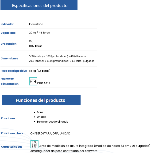 - La plataforma de pesaje también cuenta con un indicador de longitud para medir la altura.