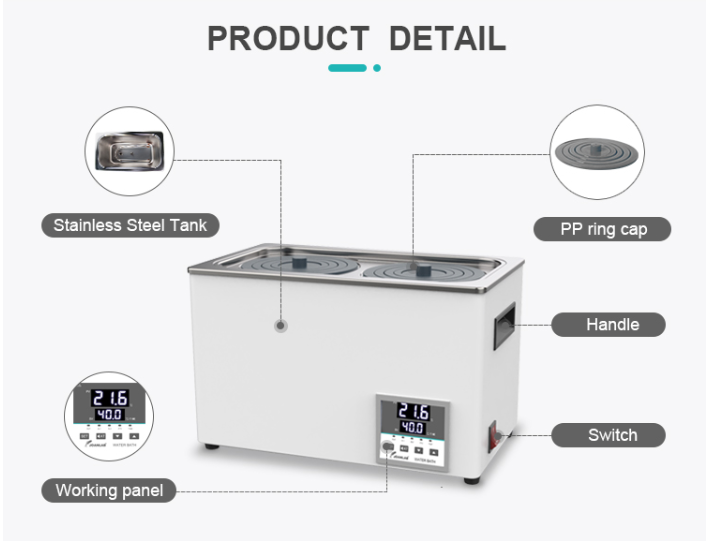 Marca: JOANLAB | WB100-2F 1. Tecnología antisecado. 2. Superficie cóncava para evitar la entrada de líquidos. 3. Sin interfaz ni soldadura. Material de acero inoxidable. 4. El tamaño del orificio se puede personalizar. 5. Convertidor A/D biintegral.