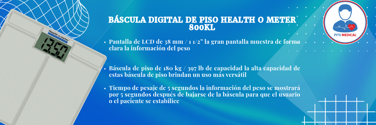 Marca: HEALTH O METER | Modelo: 800KL La 800KL es una báscula de piso digital con una plataforma de bajo perfil que requiere solo un paso mínimo, lo que ofrece al paciente una experiencia de pesaje más cómoda y estable.