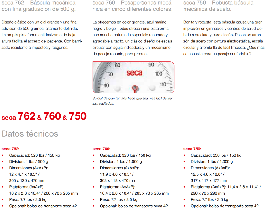 Marca: SECA | Modelo: 750 760 762 Construcción robusta. Escala circular de fácil lectura. Plataforma sólida y estable. Precisión y larga vida útil