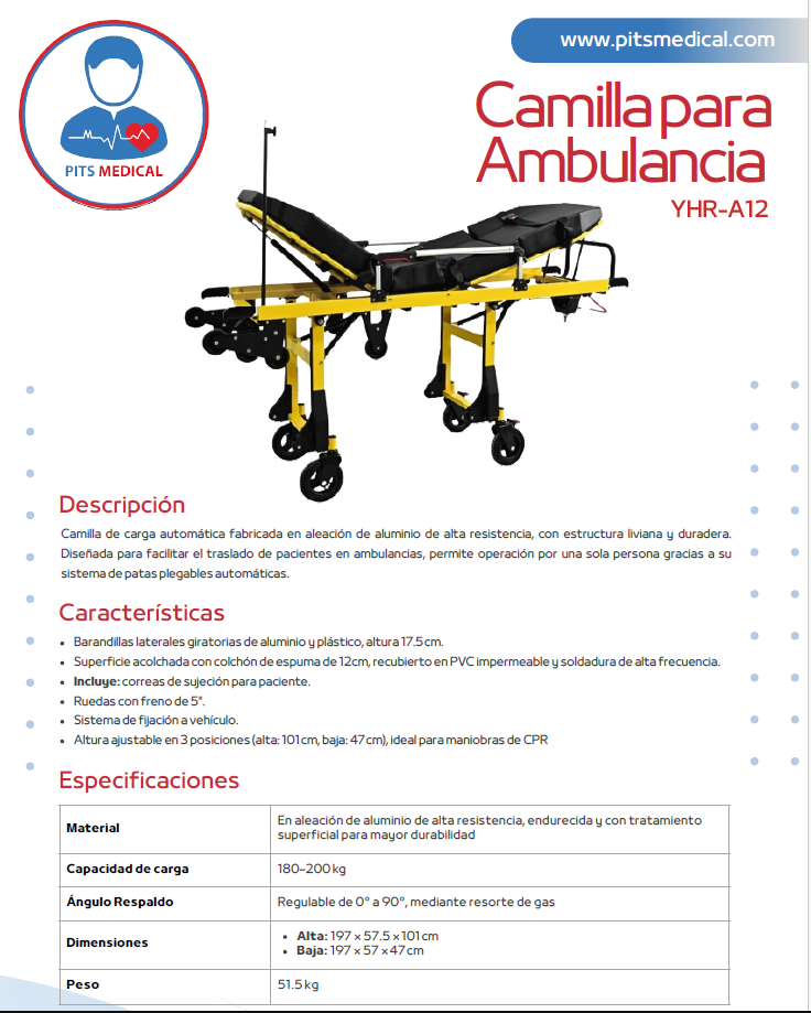 Camilla para Ambulancia YHR-A12 CON INVIMA