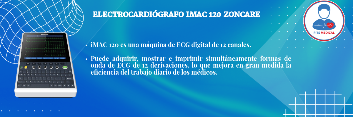 Marca: ZONCARE | Modelo: IMAC 120 El iMAC 120 es un electrocardiógrafo clásico de 12 canales. Admite conexión a Internet por cable y Wi-Fi.