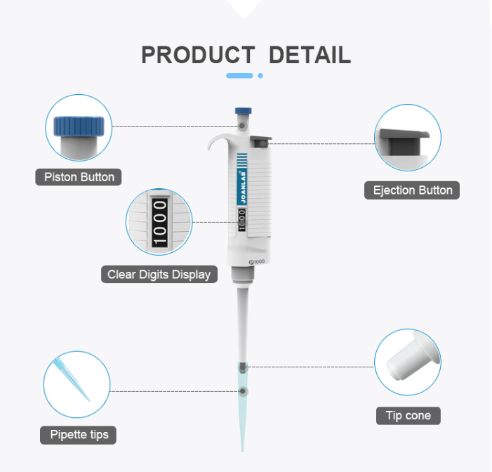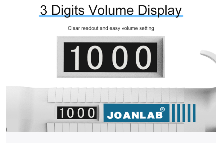 Marca: JOANLAB | Modelo: SERIE P 1. Diseño ligero y ergonómico. 2. La pantalla digital muestra claramente el volumen configurado. 3. Amplio rango de medición: de 0,1 µl a 10 000 µl. 4. Gracias a su nuevo material, es totalmente autoclavable.