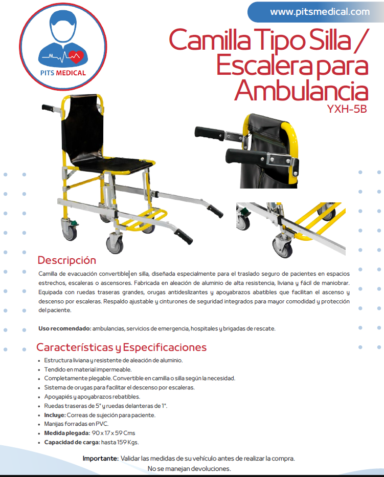 SILLA DE RUEDAS PARA AMBULANCIA YXH-5B CON INVIMA
